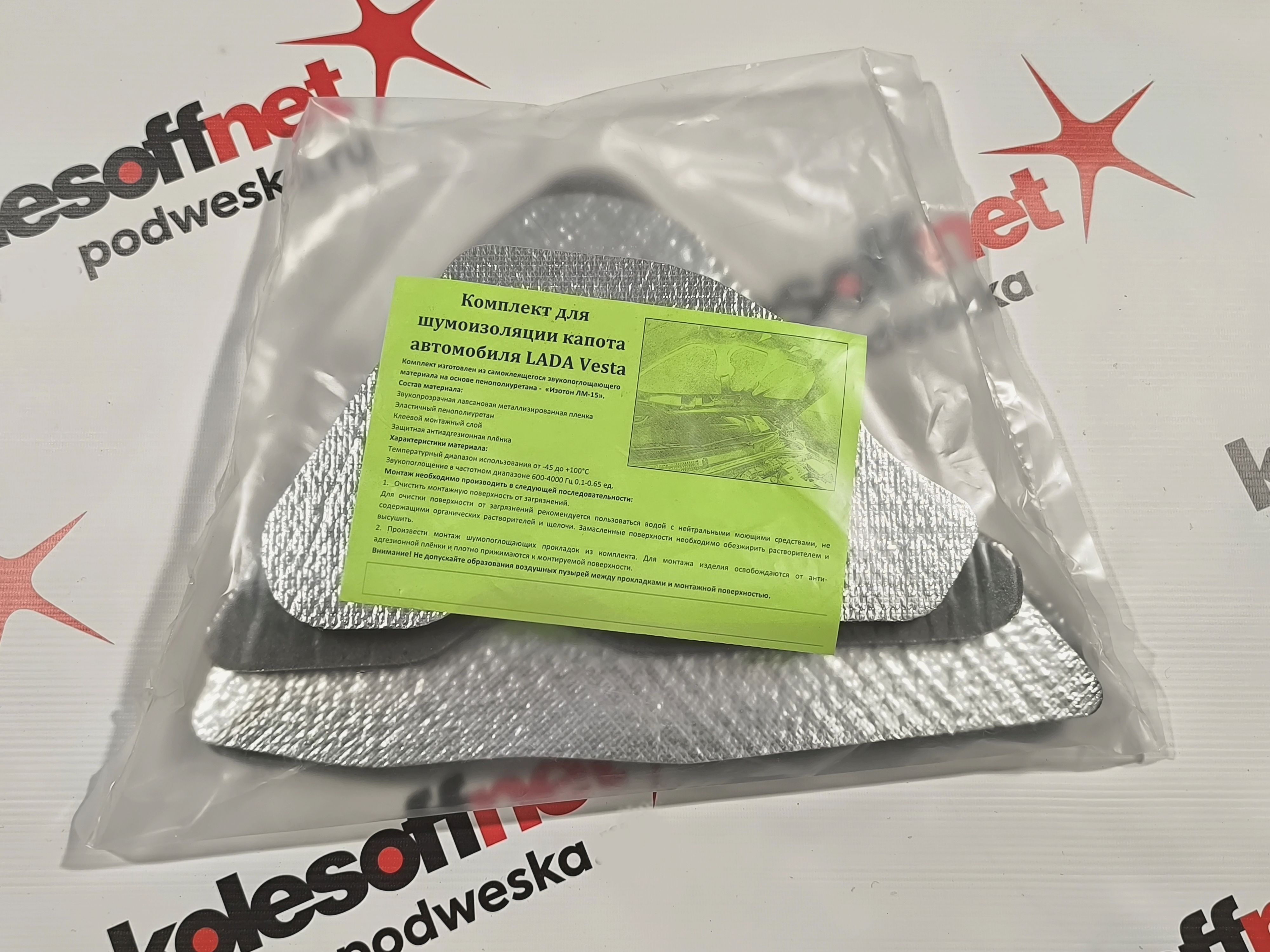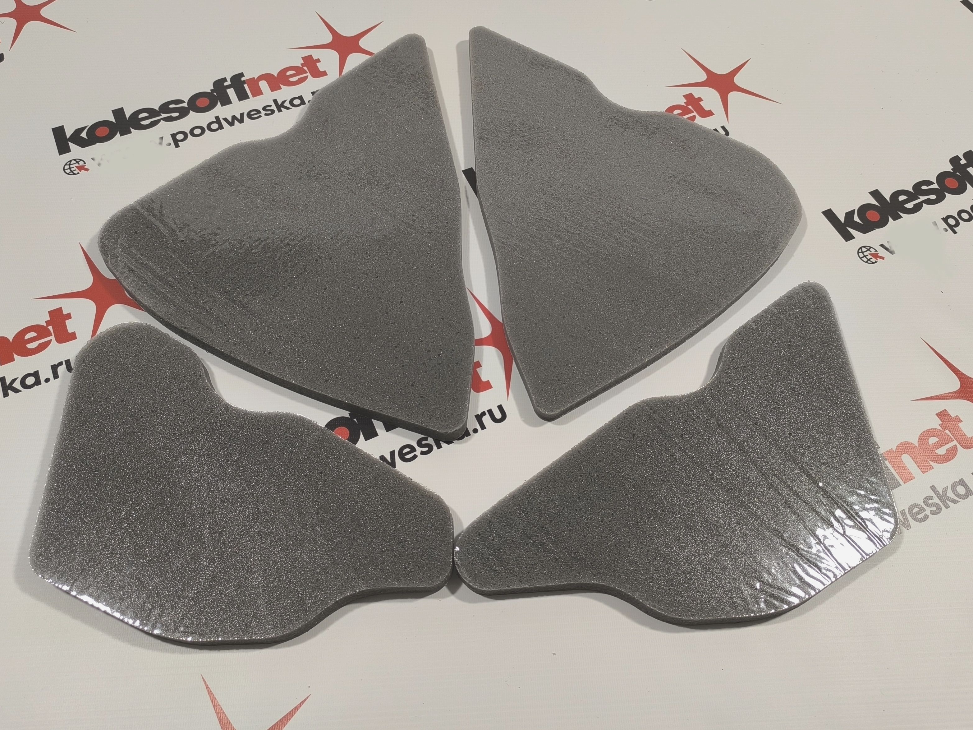 Комплект сотоит из четырех деталей изготовлен из звукопоглощающего материала на основе полиуретана"Изотон ЛМ-15" с клеющимся слоем.