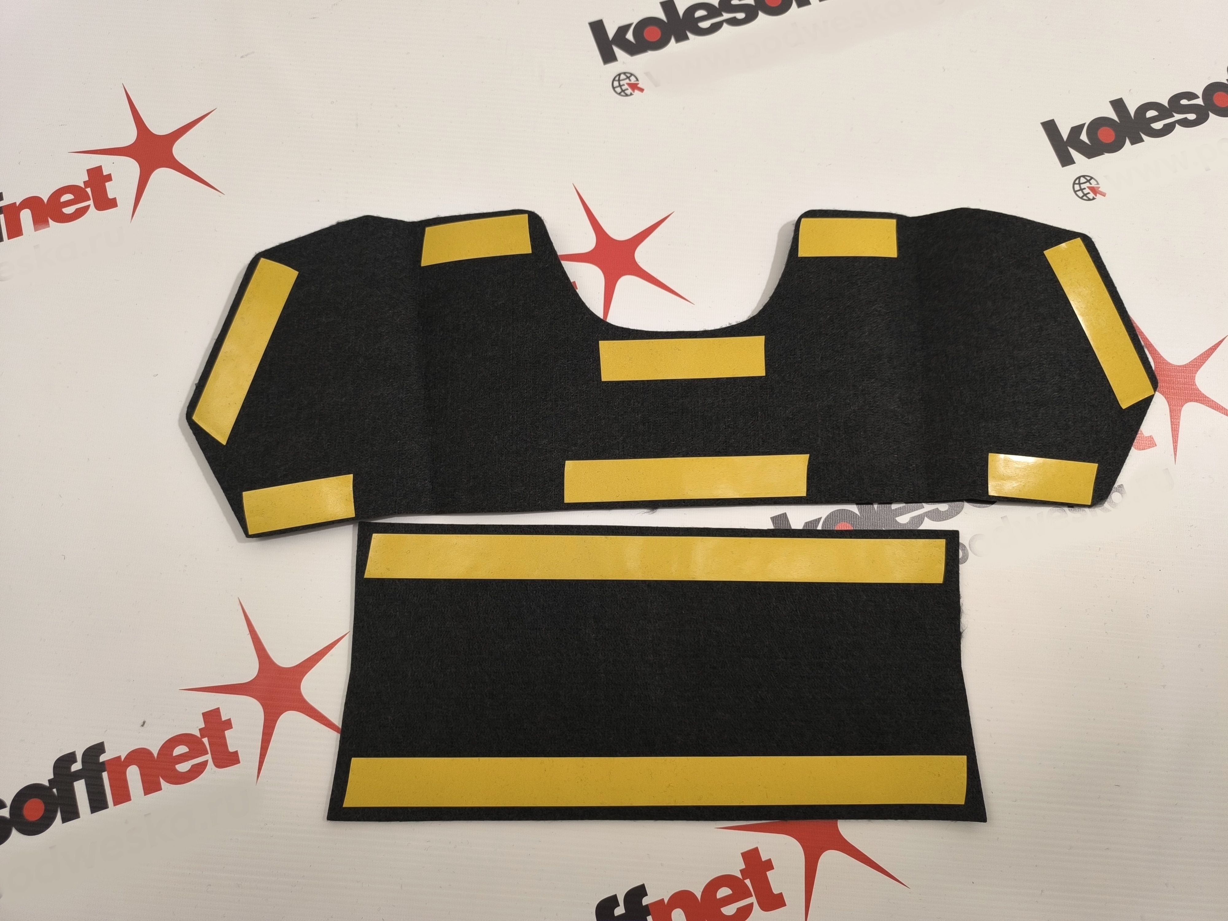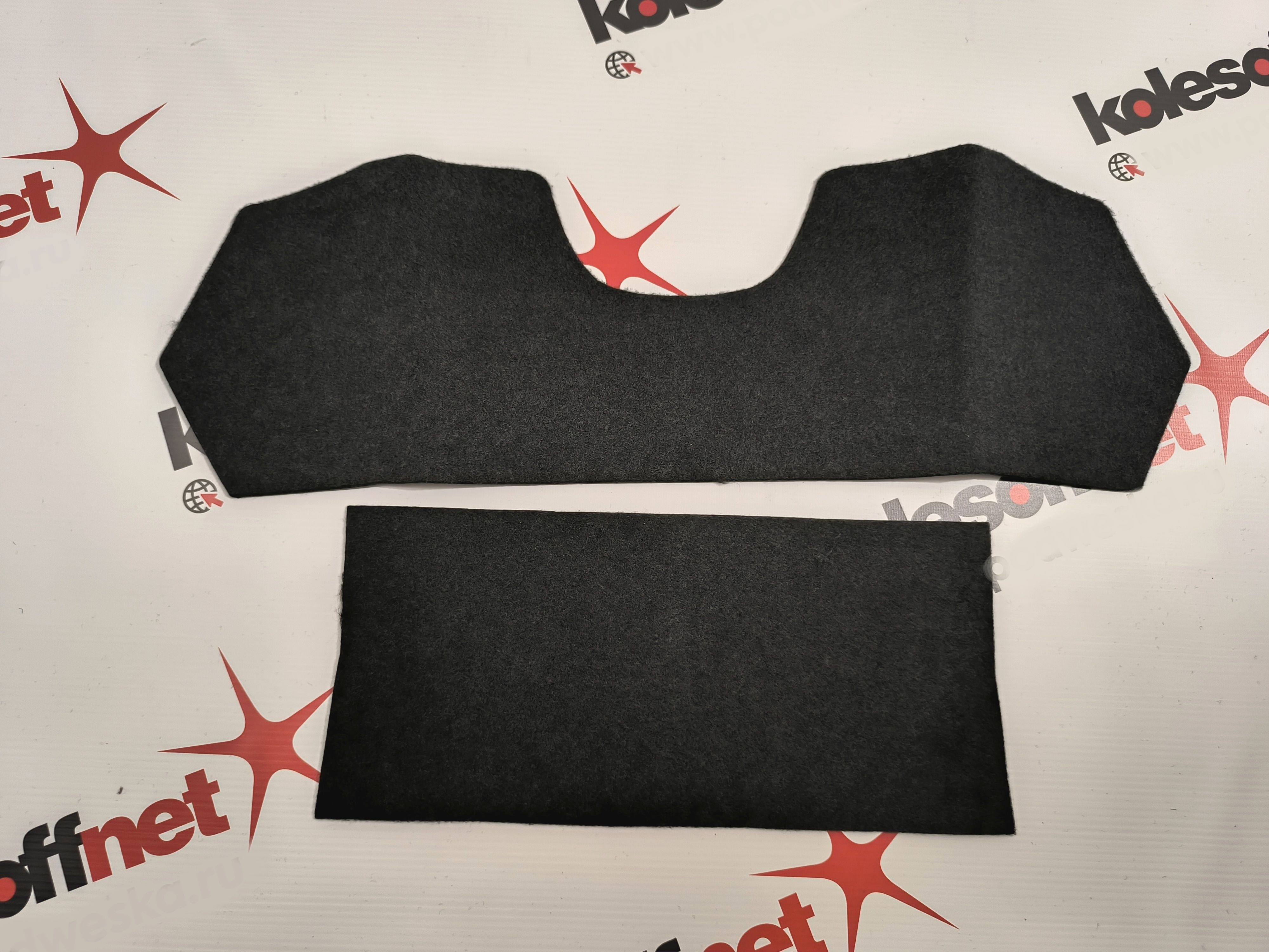 Комплект сотоит из двух деталей из шумопоглащающего материала с ворсом на клеющейся основе .